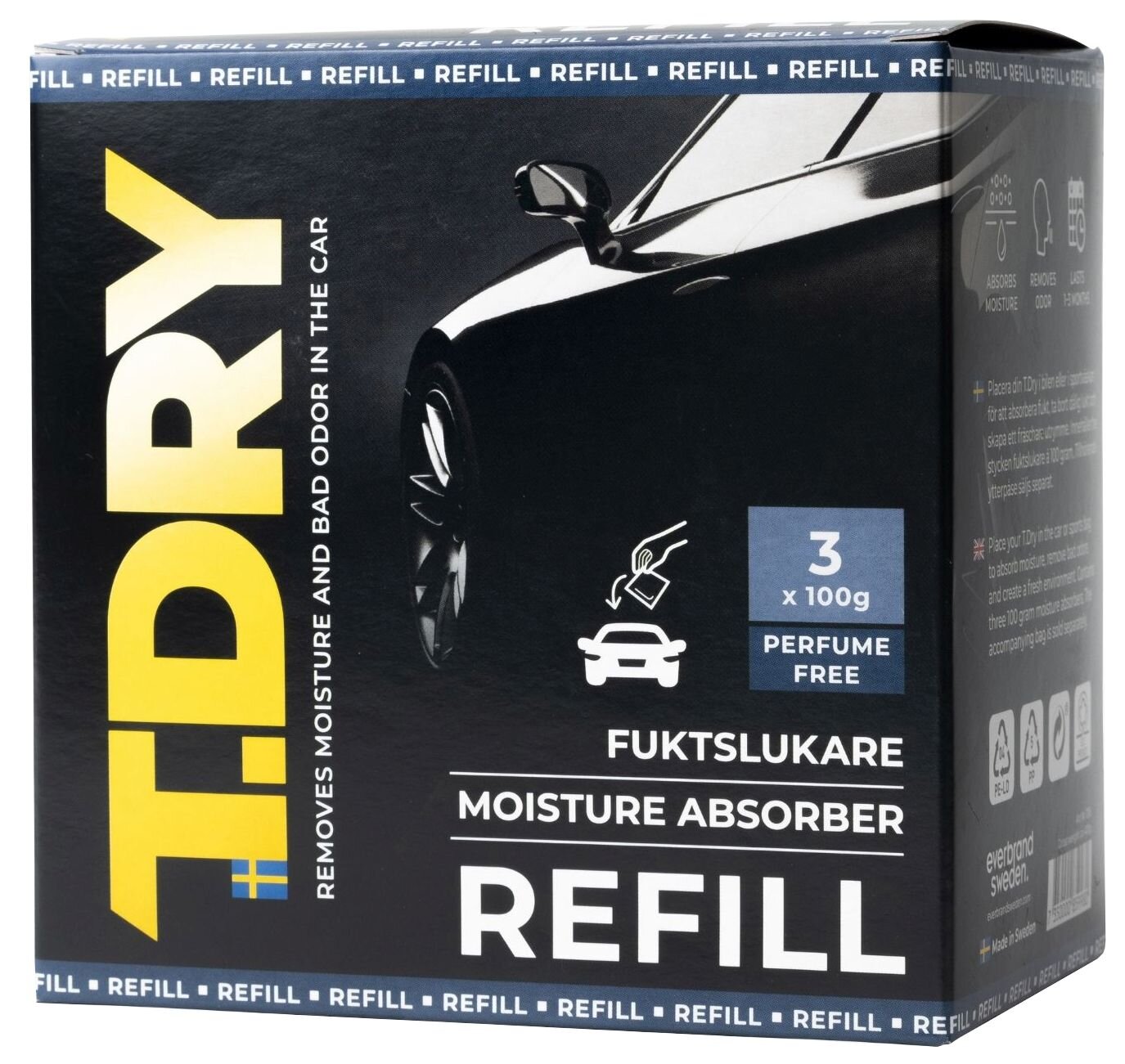 Náhradní náplň T.Dry 3-Pack Refill Scent Fresh Účinná náplň do absorbéru vlhkosti do auta či sportovní tašky. T.Dry je klimaticky neutrální švédský produkt, který je vyroben z recyklovaného plastu a přírodních surovin. Odvlhčovač odstraňuje nejen vlhkost, ale i nepříjemné pachy. Balení obsahuje...