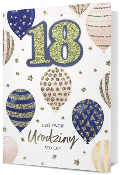 Karnet B6 HM-200 18 Urodziny, złote, balony HM-200-2504