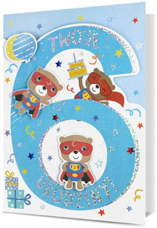 Karnet B6 HM-200 6 Urodziny, chłopiec, miś HM-200-2854