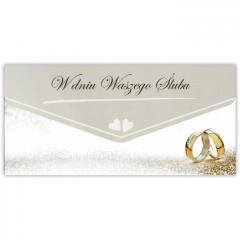 Po złożeniu format kartki DL, wyjątkowe złocenia, w środku życzenia i kieszonka na pieniądze. Dodatkowa koperta