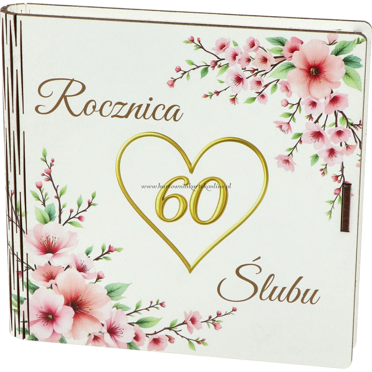 Pudełko drewniane z książeczką 60 rocznica ślubu (15x15x2cm)