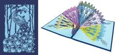 Po otwarciu karnetu oczom ukazuje się efektowny, trójwymiarowy paw z kolorowym pióropuszem. Precyzyjne cięcia papieru tworzą zachwycający efekt POP-UP, który dodaje kompozycji wyjątkowej głębi i elegancji.