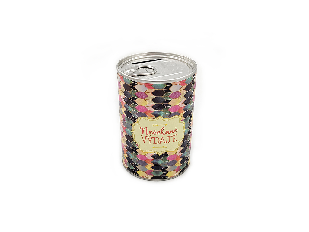 Dárková pokladnička s motivačním textem ve stylu plechové konzervy. To je originální a vtipný dárek pro každého.