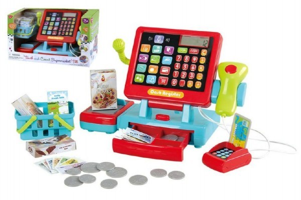 Pokladna dotyková s doplňky plast na baterie se zvukem v krabici 35x22x15cm
