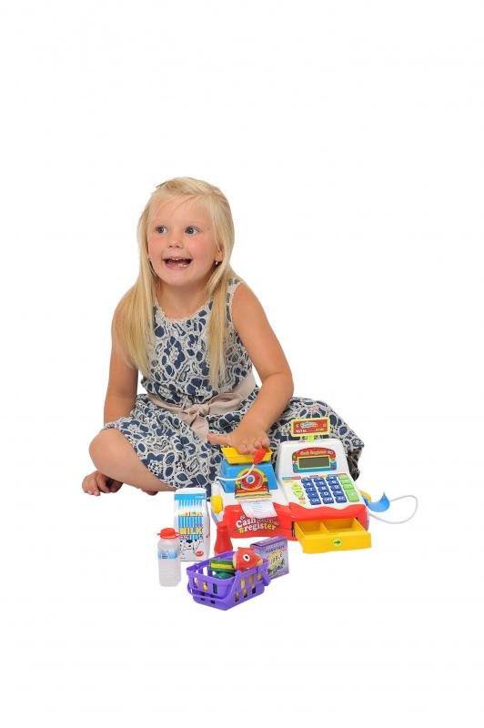 Oblíbená pokladnička s vysouvací zásuvkou na peníze, funkčními tlačítky, mikrofonem, váhou, košíkem a řadou maket potravin pro malé obchodníky. Výrobek na baterie. Vhodné pro děti od 3 let. číst celé
