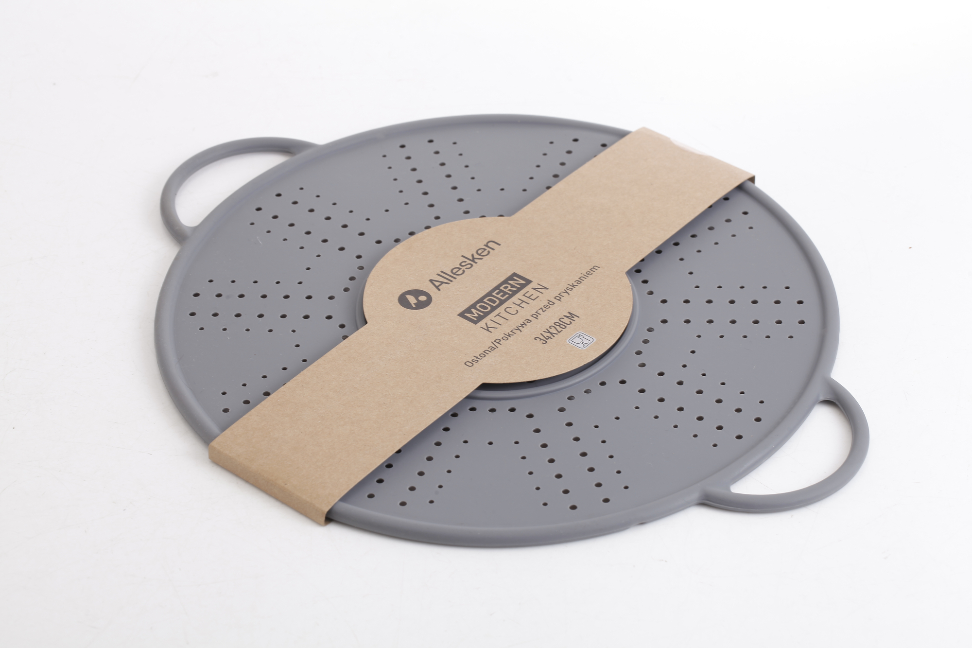 Seznamte se s silikonovou ochranou proti stříkání Modern Kitchen. Nezbytnost v každé kuchyni. Vyrobená z vysoce kvalitního silikonu, v elegantní šedé barvě, dokonale chrání před stříkáním během vaření. Skvělá pro použití na pánvích a hrncích, pomáhá udržet kuchyni v čistotě. Díky perforacím může pára volně unikat, což zabraňuje hromadění vlhkosti. Flexibilní a snadno čistitelná, ochrana je odolná vůči vysokým teplotám. Zvolte silikonovou ochranu Modern Kitchen a užijte si pohodlí a pořádek během vaření.
