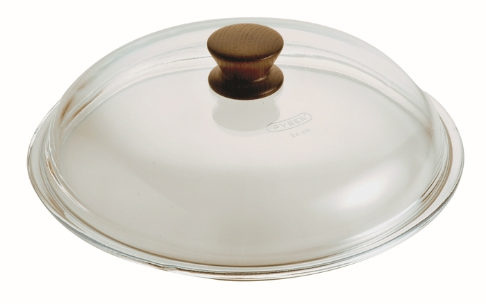 poklice d24cm, TITANIO-PYREX sklo, vč. dřev. úchytu