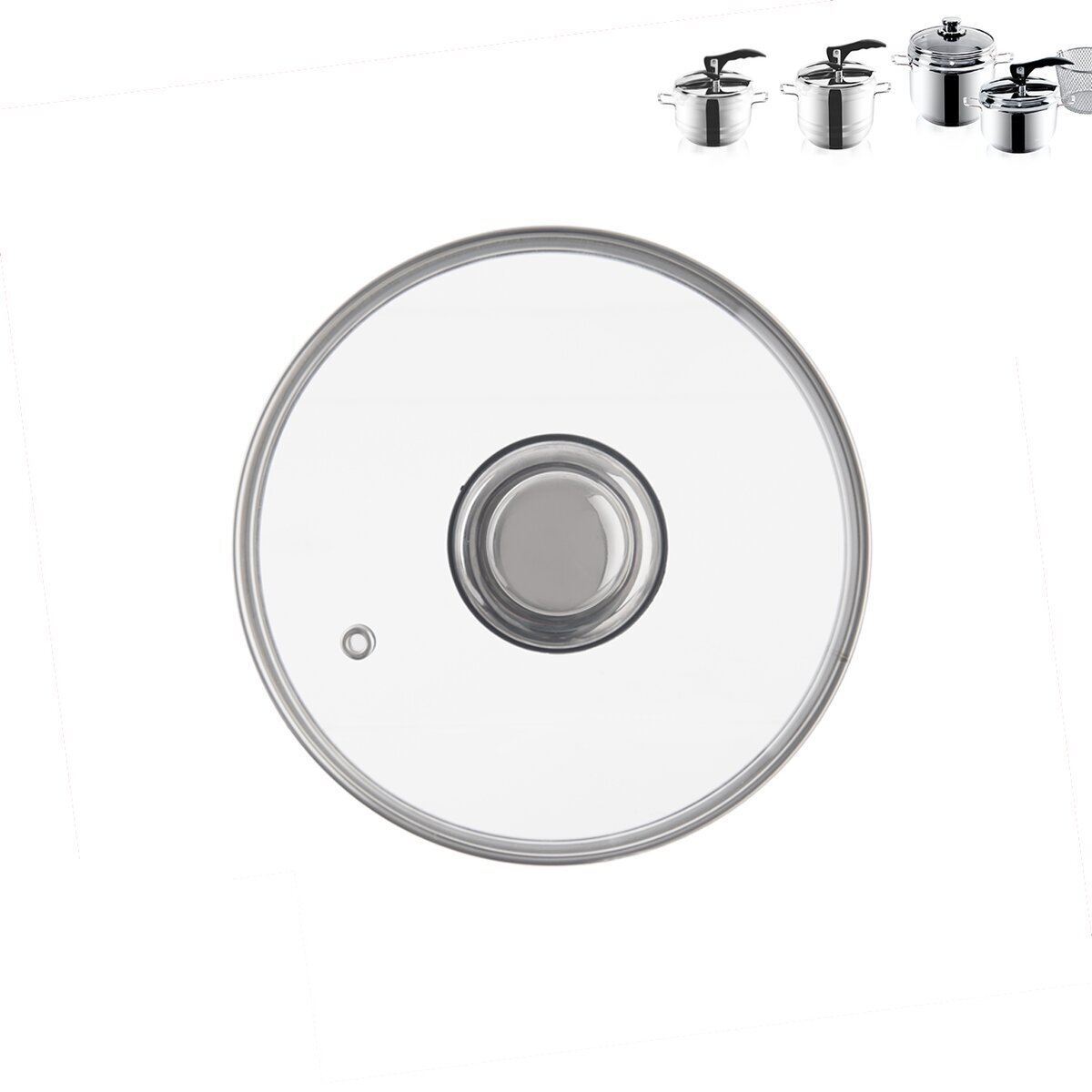 Skleněná poklice k tlakovým hrncům Profi - díky ní se z tlakového hrnce stane běžný hrnec k dovaření připravovaného pokrmu. S otvorem pro únik páry vzniklé při vaření. Materiál: sklo, nerez, plast. Lze mýt v myčce na nádobí a také použít v troubě do 150 °C (bez plastové podložky). Rozměry: pr. 17 cm. Pro tlakové hrnce 111731/111732/113044.