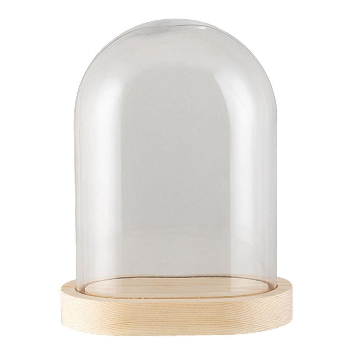 Skleněný poklop s dřevěnou podstavou 17*12*20 cm