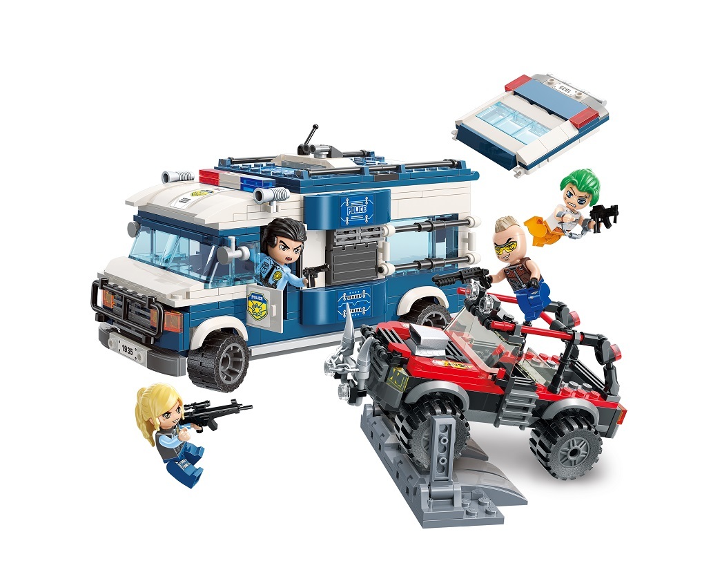 Zajměte uprchlé kriminálníky pomocí policejního zastavovacího pásu. V balení policejní dodávka, 2 figurky policistů, Jeep, 2 figurky kriminálníků. Vyrobeno z netoxického ABS plastu, v balení 608 dílků.