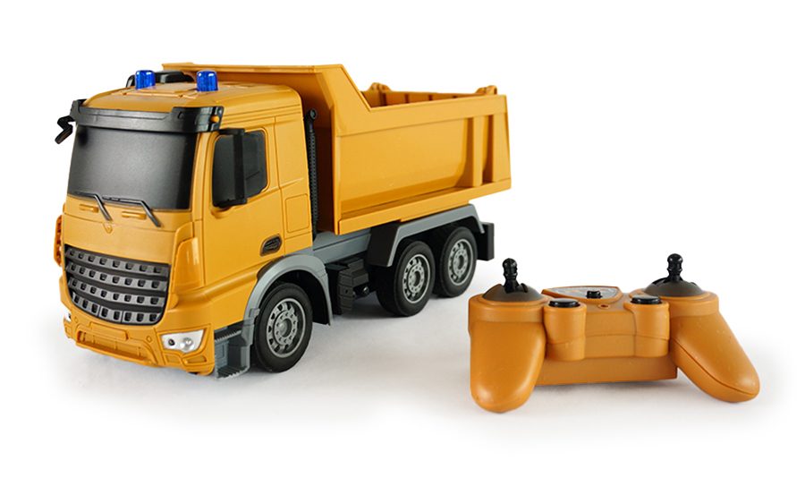 Sklápěčka na dálkové ovládání. Pohybuje se dopředu, dozadu a dostran. Při jízdě svítí světla auta. Automatické sklápění korby. 2,4 GHz. Velikost 30 cm. Nabíjení přes USB. číst celé