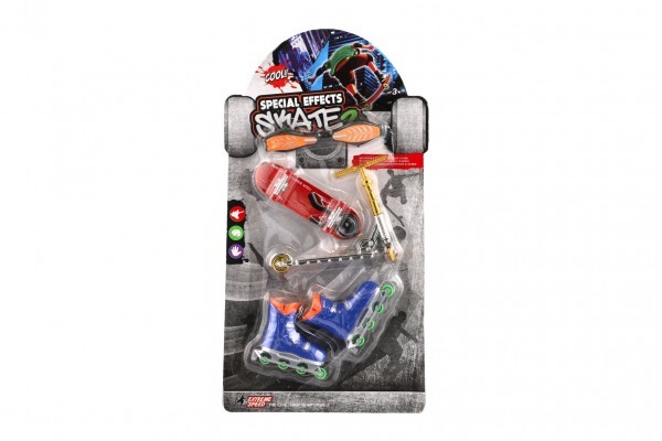 - Sada obsahuje: mini skateboard, waveboard, brusle a prstovou koloběžku.