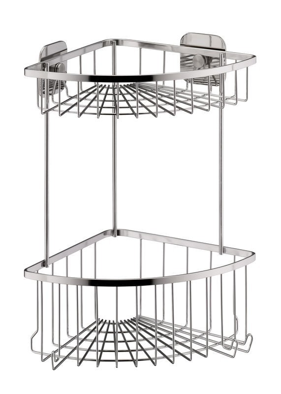 Elegantní, vysoce kvalitní a praktické! Jednoduchá a čistá montáž bez vrtání: velká rohová police Arona z nerezové oceli se jednoduše připevní na stěnu pomocí lepicích podložek. Bezešvě krásně dokončená police se 2 úložnými košíky, kterou lze použít na šampon, mýdlo a další koupelnové potřeby, je vysoká 32 cm. Zvláštní přednost: Malé háčky, které byly chytře zapracovány do boku výrobku pro zavěšení menšího příslušenství, jako je mycí chňapka Nerezová ocel 18/10 elektrolyticky leštěná 2 montážní desky s lepidlem 3M 26x18,5cm 32cm v