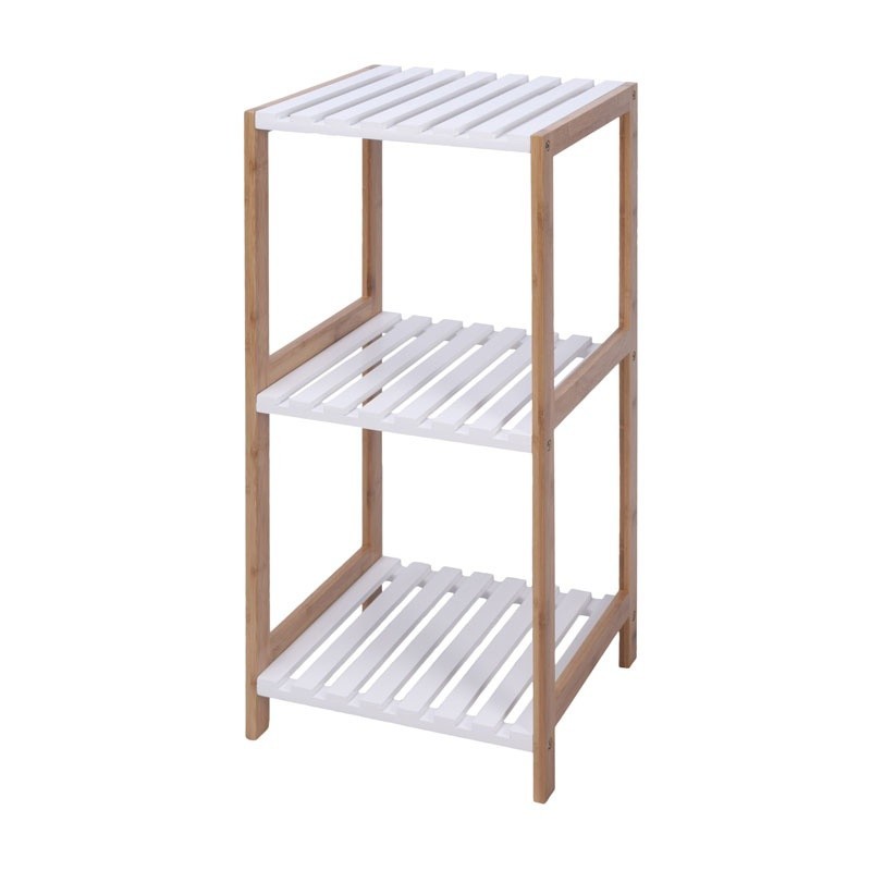 koupelnový regál, 3 police mdf, bambusové nohy s bílými policemi, rozměr 33x34xh79cm, nohy 13x32mm číst celé