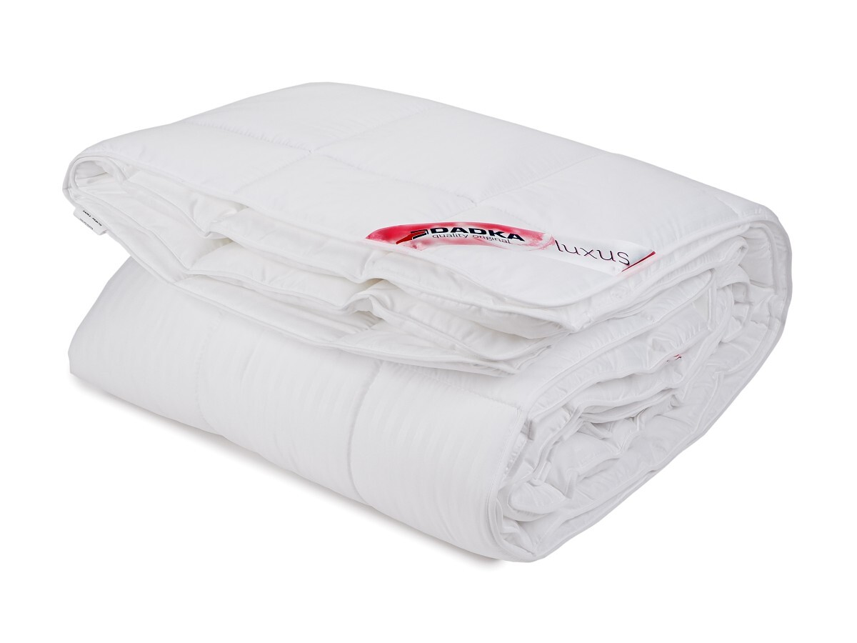 Vyrobena je z kvalitního dutého vlákna (100% polyester) s povrchovou vrstvou z mikrovlákna, které zajišťuje hebkost a dlouhou životnost. Kapna přikrývky je dostupná ve dvou variantách - tenčí s dvěma vrstvami, nebo silnější se třemi vrstvami, aby vyhověla vašim individuálním potřebám. Jemný proužek o šíři 1 cm dodává elegantní vzhled a čistě bílá barva se snadno kombinuje s jakýmkoliv ložním prádlem.