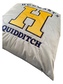 Hebký čtveratý polštář s nápisem Hogwarts Quidditch a žlutým písmenem "H".