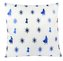 Bílý polštář s modrými detaily a motivy animované pohádky Frozen.