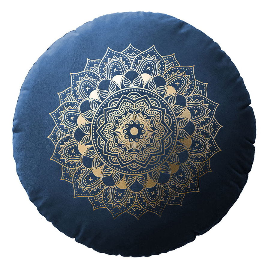 Polštář s výplní MANDALA tmavě modrá O 45 cm x 15 cm Mybesthome