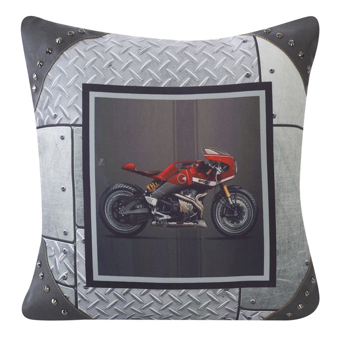 Polštář ROGER šedý MyBestHome 45x45cm koženka s aplikacemi a motivem