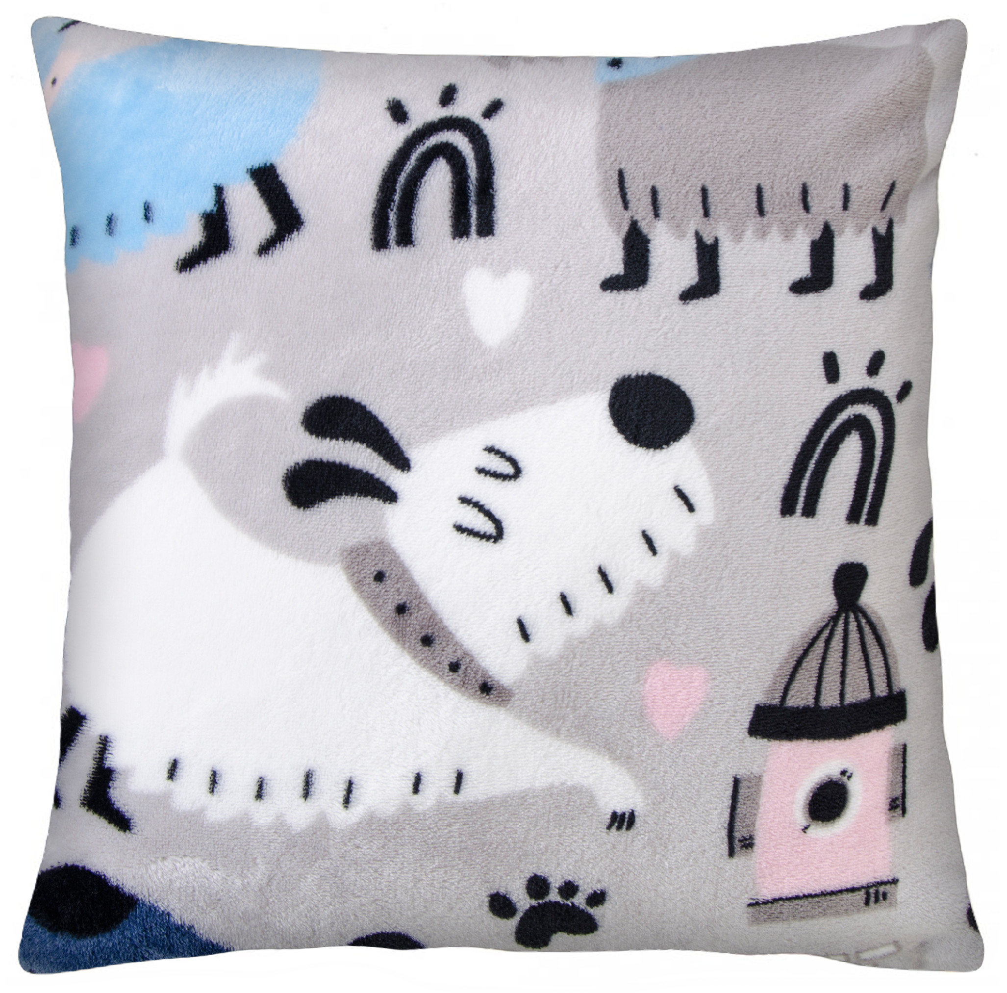 Polštář CUTE ANIMALS světle šedá PEJSEK 40x40cm, mikrovlákno Essex