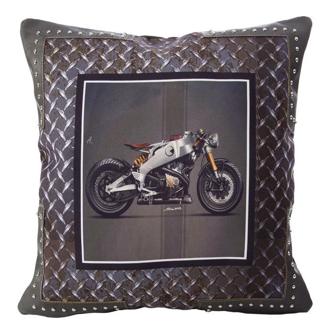 Polštář ROGER hnědý MyBestHome 45x45cm koženka s aplikacemi a s motivem