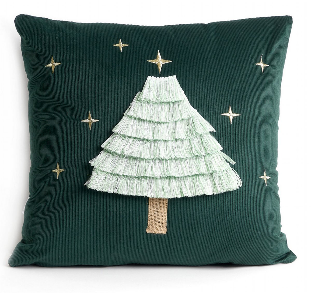 Vánoční polštář s výplní | TRESSA | s aplikací vánočního stromku zelená | 45x45 cm | 866222 Homla