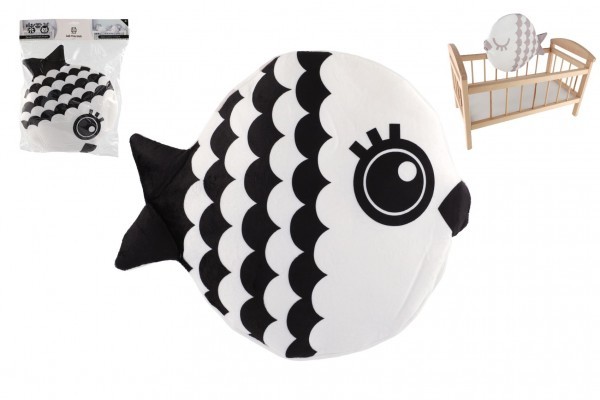 Polštář ryba plyšový 35x30cm černobílý v sáčku 0+