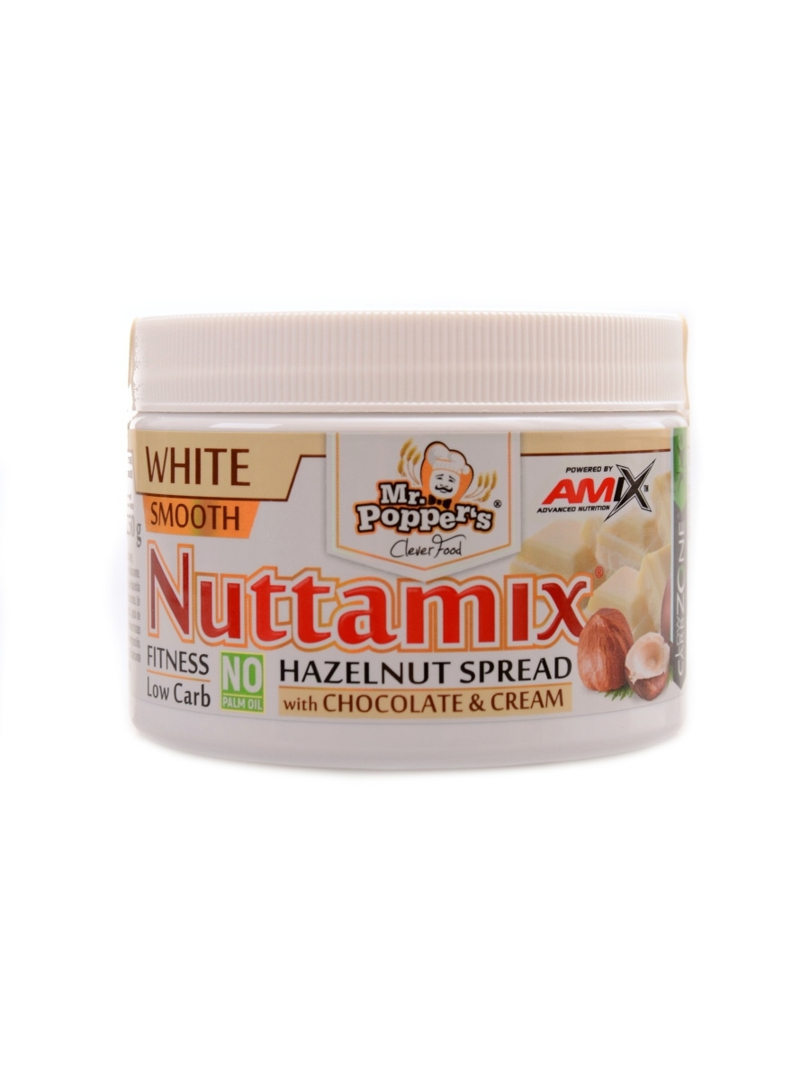 Amix Nuttamix je velice jemný lískooříškový krém s vysokým obsahem mléčných bílkovin a dalšími vlastnostmi, jako je nízký obsah cukru a vysoký obsah vlákniny. Neobsahuje palmový tuk!