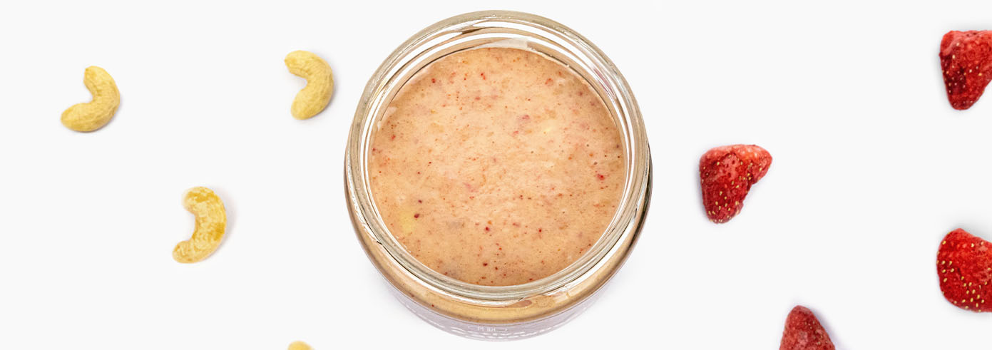 Lahodný krém z aktivovaných kešu ořechů, lyofilizovaných jahod a bílé čokolády. Krém, který v puse vytváří návykový zážitek. Tohle bude Váš nejoblíbenější oříškový krém. Věřte, že u jedné lžičky nezůstanete.