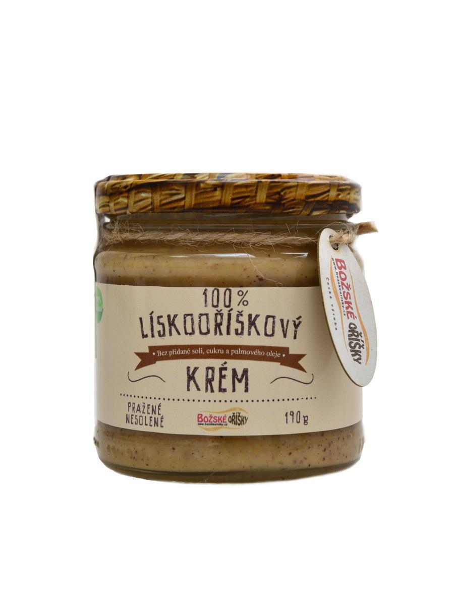 -100% Lískooříškový krém Vám poskytne bohatý zdroj zdravých tuků, sacharidů, bílkovin a především úžasný požitek z chuti! -Lískooříškový krém je vyroben ze 100% z přírodních pražených lískových ořechů -Je chutnou a výživnou potravinou ideální jako doplněk do Vašich jídel, svačinek k vaření i prostě jen na toast. -Lískooříškový krém zachovává jednak vysoký obsah proteinů a současně výraznou hustou ořechovou chuť. Není třeba dodávat, že nepřidáváme žádné zbytečnosti jako jsou sůl, cukr nebo olej.