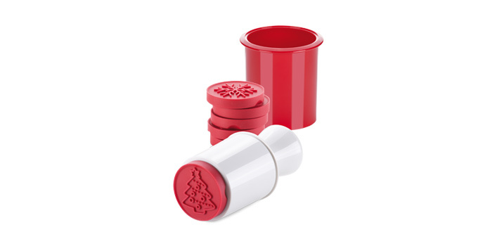 Vynikající pro snadnou přípravu dekorovaných domácích sušenek. Souprava obsahuje razítko, 6 originálních snadno vyměnitelných dekorů a kulaté vykrajovátko. Dekory jsou uloženy v zásobníku razítka. Vyrobeno z prvotřídního odolného plastu a silikonu, vhodné do myčky. Recepty uvnitř balení. 3 roky...