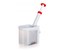 Odpeckovač má ergonomickou výšku 26 cm, která umožňuje pohodlnou práci. Stabilní základna s rozměry 15,5 x 9,5 cm je vybavena gumovými přísavkami, které pevně drží na jakémkoli povrchu a zabraňují klouzání během používání. Elegantní kombinace bílé barvy s červenými prvky navíc zaujme na první pohled a skvěle zapadne do vaší kuchyně.
