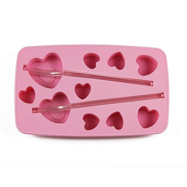 Tvořítka na led s brčkem. Díky tomu, že je vyrobeno z ohebného silikonu, snadno, rychle a účinně připravíte drink s ledem. Tvořítko se naplní skoro po okraj vodou a dá se do mrazáku, kde zatuhne a led je hotov. Barva růžová. Tvar srdce. Rozměry - 23 x 2 x 13 cm.
