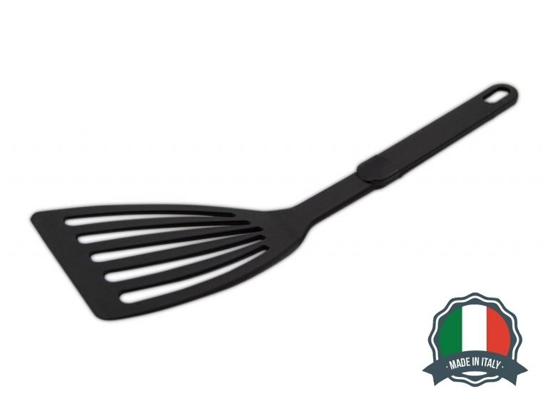 Celonylonová děrovaná obracečka se širší kulatou hlavou. Nylon je odolný teplotám do 210°C a šetrný ke všem povrchům nádobí. Vhodná do myčky nádobí. Délka celkem 29 cm, šířka 9 cm. Italský výrobce. EAN 8032797735614