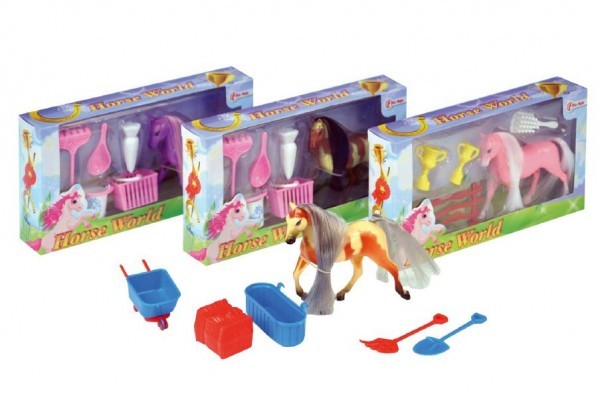 Kůň česací s doplňky plast 11cm 4 druhy v krabičce 20x11x3cm