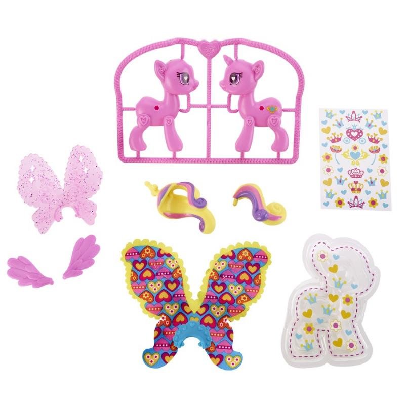 Vytvoř si své nejkrásnější poníkovské kamarádky. Vyber pro ní krásná křídla a dodekoruj ji samolepkami Cutie Marks. Balení obsahuje tři sady křídel, hřívu a ocas. V assortu se nachází 5 variant tvých oblíbený poníků.
