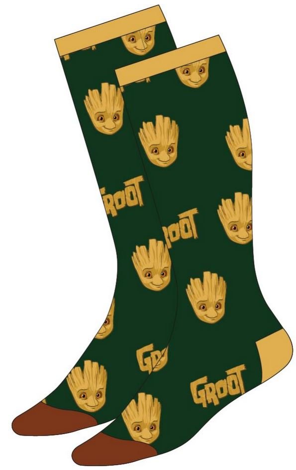 Zelený pár ponožek s grafikou Groota, inspirovaných sérií akčních filmů Guradians of the Galaxy (Strážci Galaxie). Ponožky jsou vhodné pro všechny menší i větší fanoušky.
