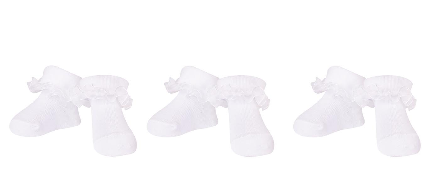 SCORPIO SKA-0119 Skarpety niemowlęce z falbanką na bucik białe 3-6 m
