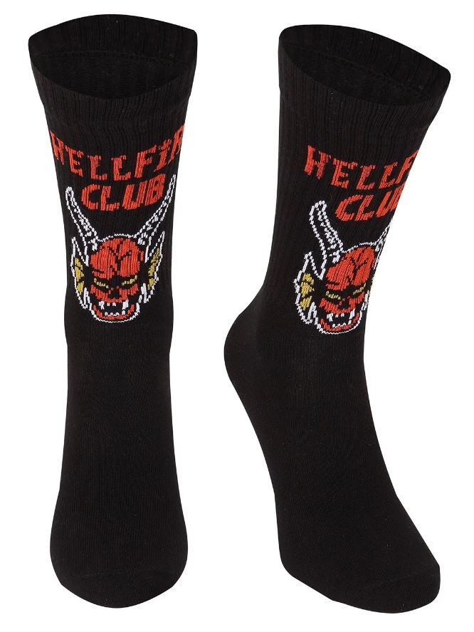 Uvolněte svůj styl s našimi černými pánskými ponožkami Stranger Things. Tyto ponožky se vyznačují designem Clubu Hellfire, který dodá každému outfitu nádech tajemna. Jsou vyrobeny z vysoce kvalitního materiálu a nabízejí celodenní pohodlí a odolnost. Ideální pro fanoušky milující tento sci-fi seriál, ale také pro svérázné jedince.
