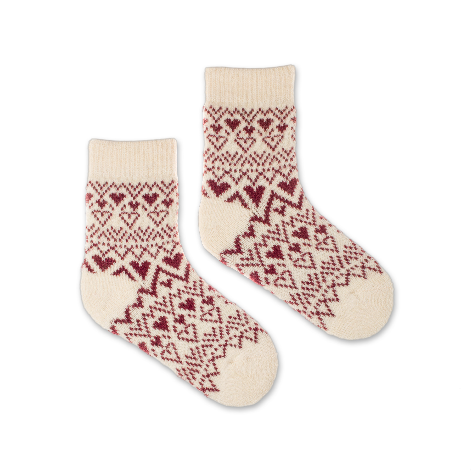 Dětské vlněné ponožky Vlnáč srdíčka bíle Bílé L (32-34)