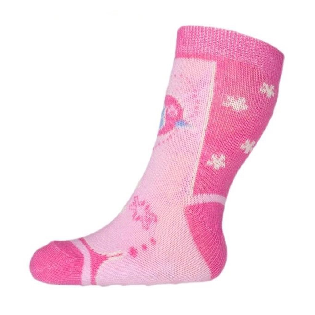 Kojenecké bavlněné ponožky New Baby s ABS. Ponožky jsou pohodlné, díky pružnému lemu nikde netlačí, mají veselé obrázky a krásné barvy. Moderní design sluší všem malým dětem. Ponožky mají spodní silikonovou protiskluzovou vrstvu. Jsou vyrobeny z kvalitního materiálu, který nepouští barvu a drží tvar. Složení: 80% bavlna, 16% polyamid, 4% elastan. Délka ponožky ve velikosti 74 je cca 9-10 cm.
