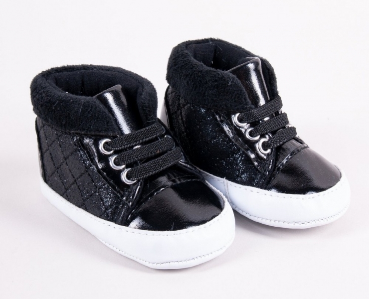 Kojenecké boty/capáčky prošívané lakýrky - černé; 56-68 (0-6 m)