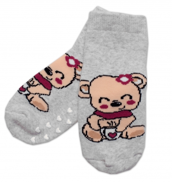 Dětské froté ponožky s ABS Medvídek - šedé, vel. 31/34