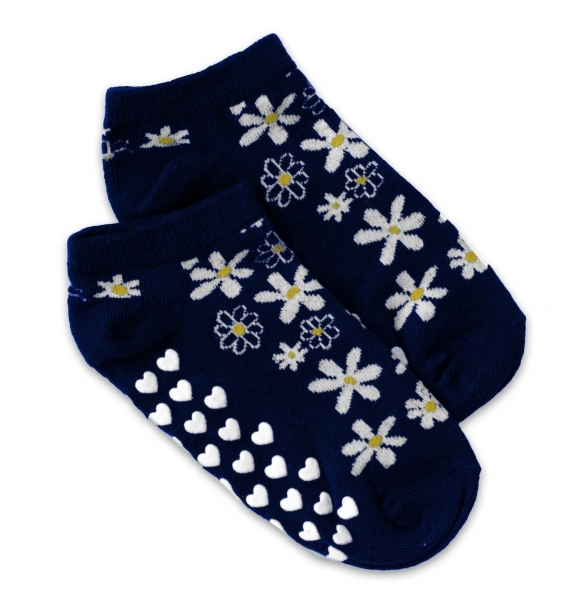 Dětské ponožky s ABS Květinky - tm. modré; 19-22
