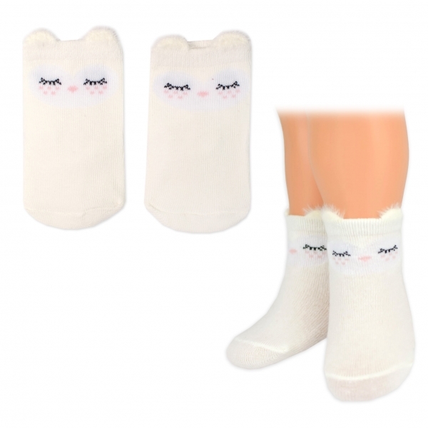 Dívčí bavlněné ponožky Smajlík 3D - smetanové, vel. 80/86 - 1 pár; 80/86 (12-18m)