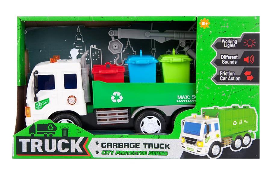 Zalety produktu: rozwijanie wyobraźni dziecka, nauka segregacji śmieci, nauka dbania o środowisko, efekty świetlne i dźwiękowe, śmieciarka posiada funkcję pull&back, dzięki czemu po pchnięciu pojazdu do przodu kontynuuję jazdę samodzielnie, posiada ruchomy hak. Śmieciarka MEGA CREATIVE to doskonały atrybut podczas próby nauczenia swoich Pociech zasad segregacji odpadów oraz dbania o środowisko. W trakcie zabawy ulubionym samochodem, dziecko posiądzie niezbędną dla naszej Planety wiedzę! Zawartość zestawu: Auto śmieciarka, 3 kontenery na odpady. Całość wykonana z plastiku. Wymiary/waga/baterie: wymiary produktu (dł. x wys. x gł.) [cm]: 25x15x80, wymiary opakowania (dł. x wys. x gł.) [cm]: 29x17x10, waga produktu bez opakowania [kg]: 0,26, waga produktu w opakowaniu [kg]: 0,86 kg, wymaga zasilania bateriami 2 x AG13 1,5V- załączonymi w zestawie. Zestaw pakowany w kartonik z okienkiem.