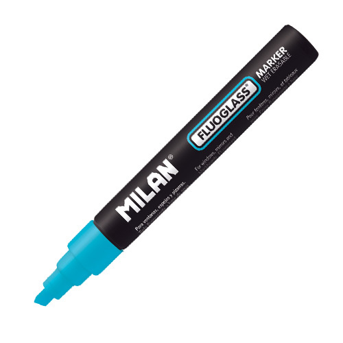 Popisovač Milan FLUOGLASS - modrý na okna, sklo, tabule
