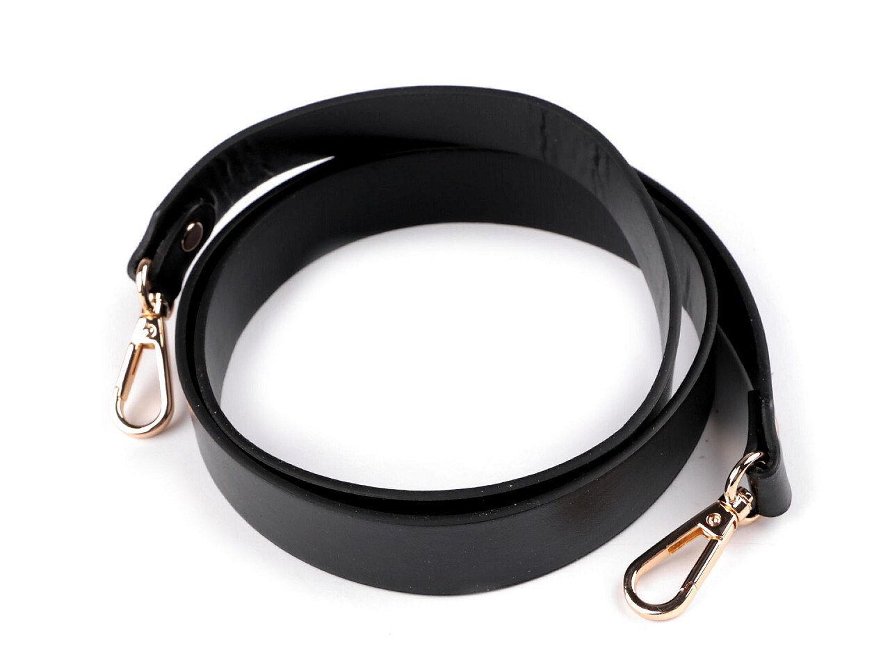 Koženkový popruh / ucho na kabelku s karabinami šíře 2,4 cm - 1 ks - 3 černá zlatá