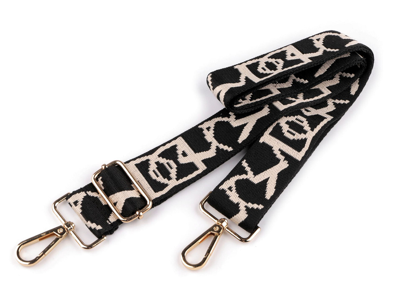Textilní ucho / popruh na tašku s karabinami šíře 3,8 cm - 1 ks - 5 černá zlatá
