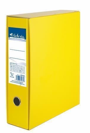 Pákový pořadač s obalem, žlutý, 75 mm, A4, karton, VICTORIA